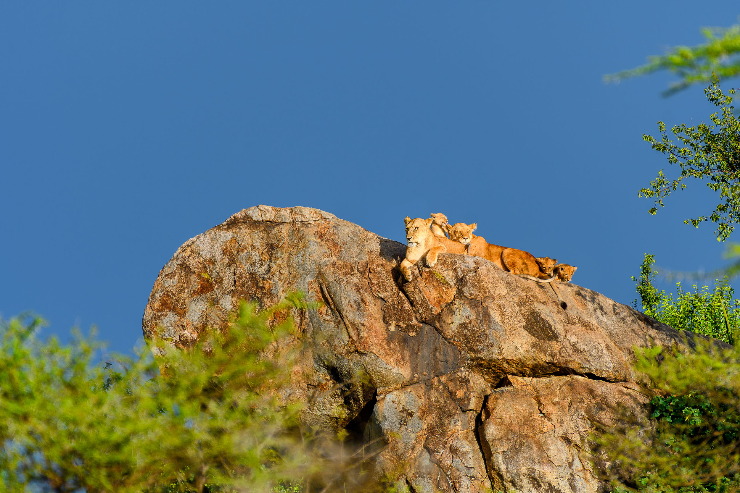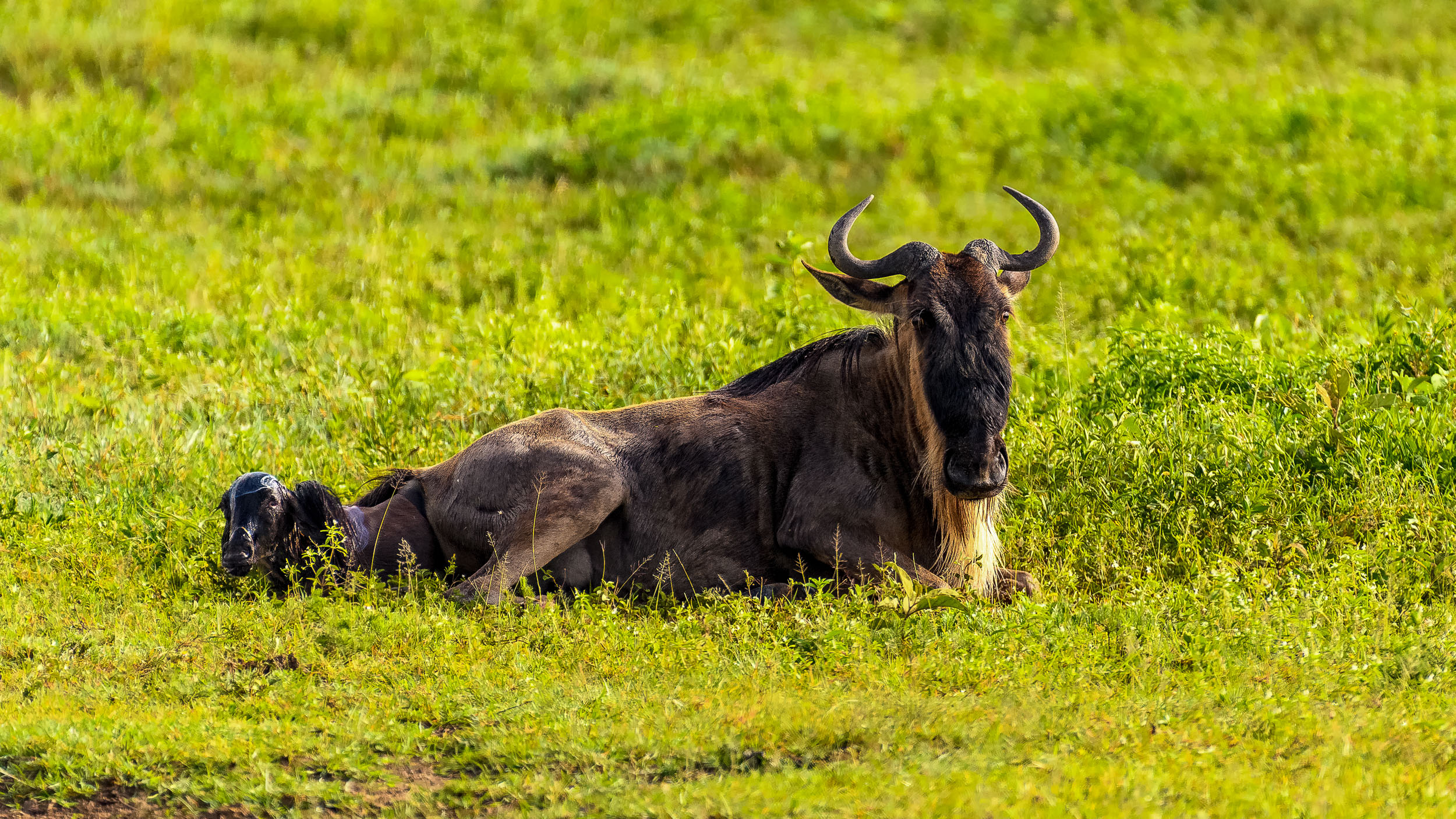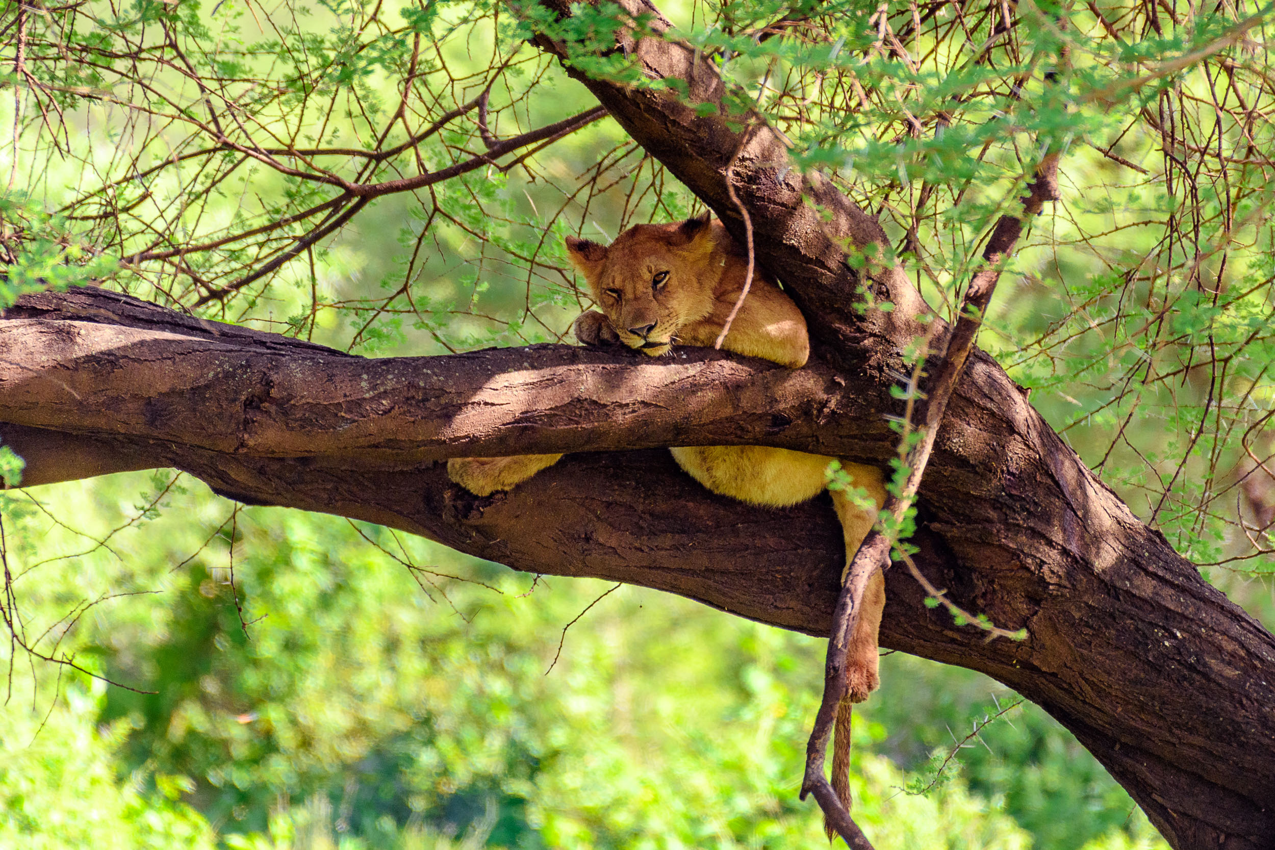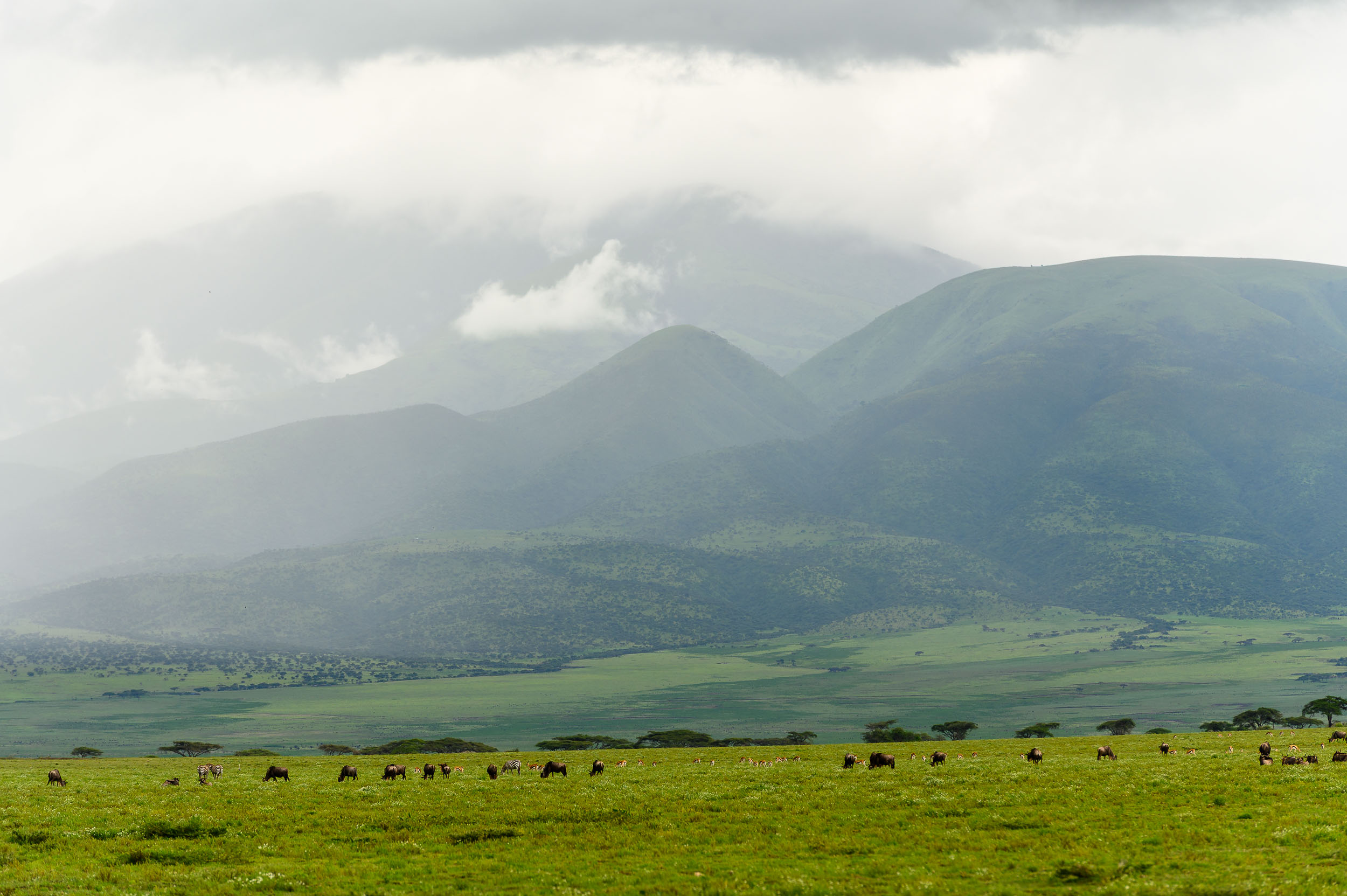Le parc national du Tarangire m'a accueilli dans une atmosphère particulière : en ce début d'année humide, la végétation luxuriante offrait un contraste saisissant avec les troncs massifs des baobabs millénaires et les immenses troupeaux d'éléphants. Puis, l'immensité du Serengeti s'est ouverte à moi. C'est là, dans ces plaines sans fin, que se joue le drame éternel de la vie et de la mort. J'ai eu la chance d'assister à des scènes de chasse intenses et d'observer la grande migration, ce mouvement perpétuel de millions de gnous et de zèbres guidés par les pluies.